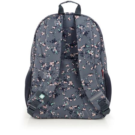 Hátizsák, iskolatáska, cipzáras, GABOL "Secret", szürke, virágmintás