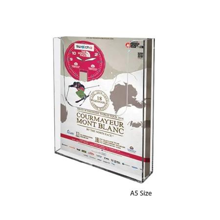 Az A5 méretű fali prospektustartó praktikus és helytakarékos megoldás szóróanyagok és katalógusok kihelyezésére forgalmas helyeken.
