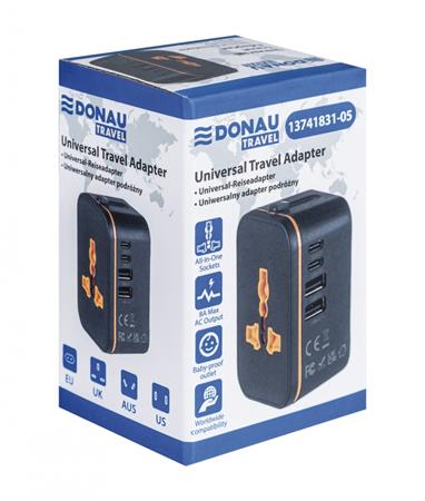 Utazóadapter, univerzális,  DONAU "Travel 205", fekete