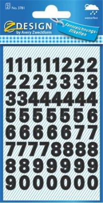 Matrica, számok, 0-9, AVERY ZWECKFORM, fekete, 120 matrica/csomag